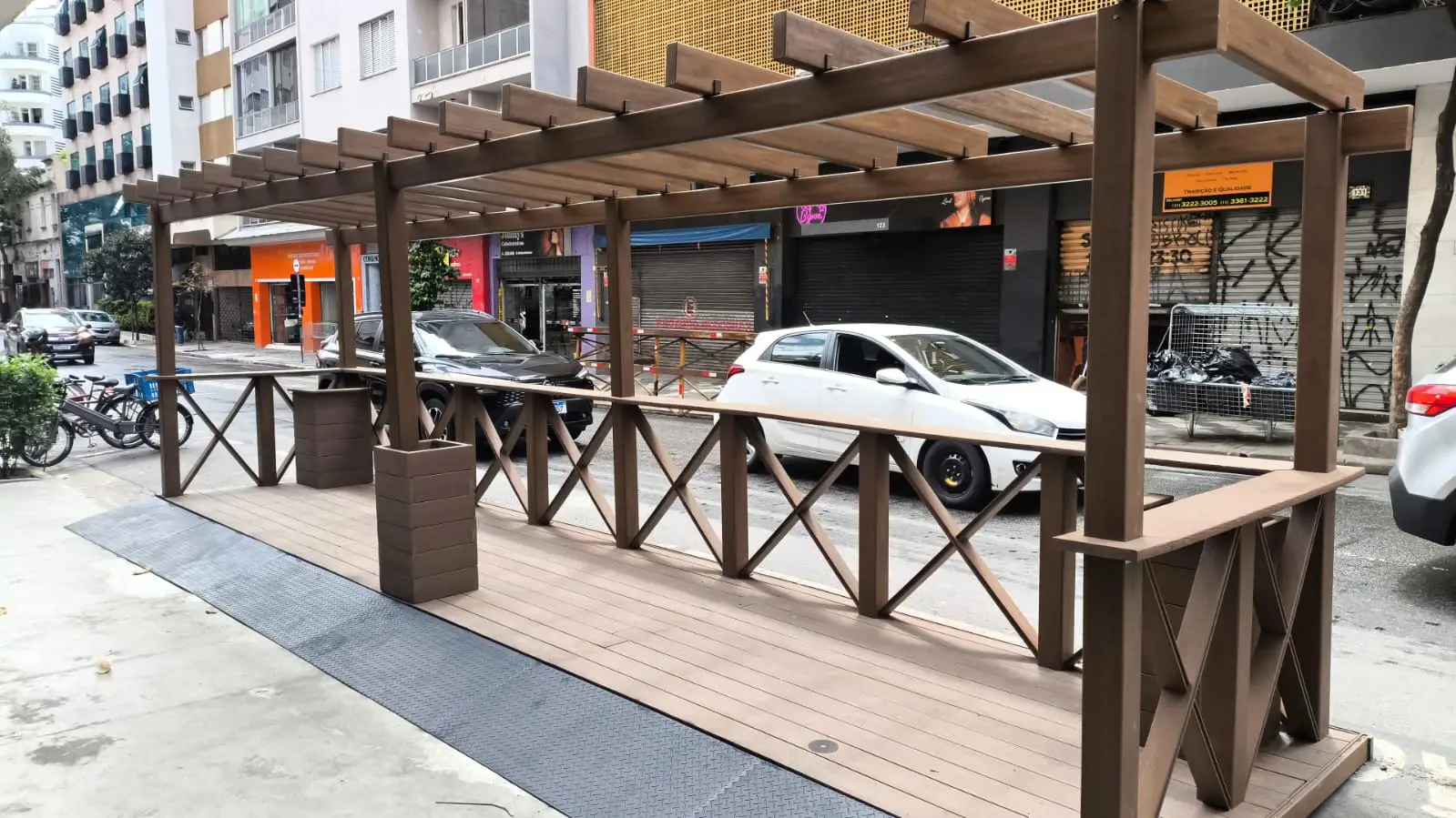 Utilizando materiais resistentes e duráveis, como a madeira plástica, os parklets são pensados para oferecer praticidade e contribuir para a valorização do espaço urbano.