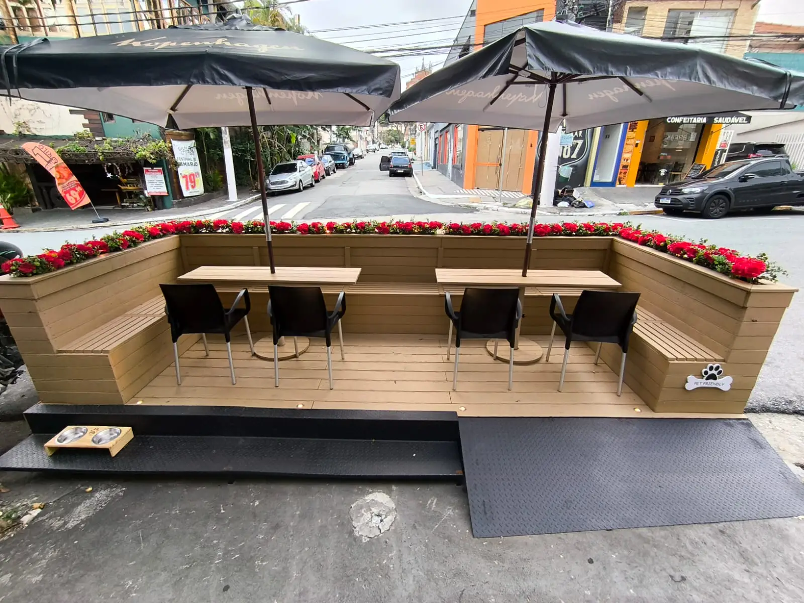 Além de ampliar a capacidade de atendimento, os parklets agregam valor ao negócio, tornando-o mais atrativo para os clientes.