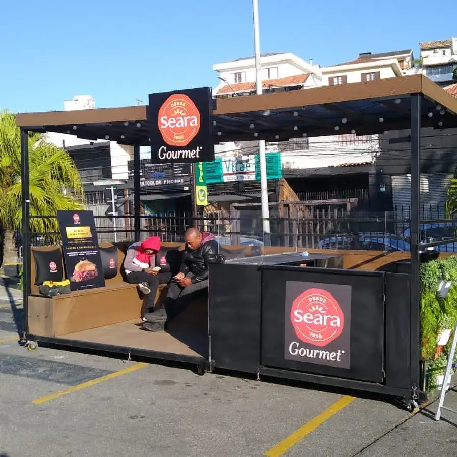 O parklet movel se destaca por sua estrutura versátil e funcional, que permite sua utilização em diversos tipos de ambientes, como bares, cafeterias, praças e espaços corporativos.